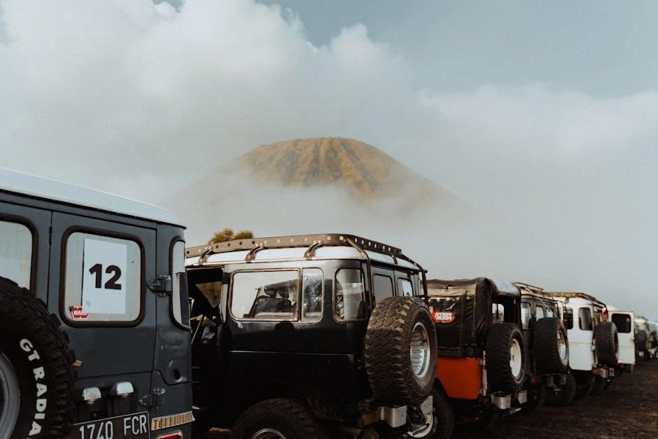 Low fuel, oil pressure, and coolant temperature are also prominently displayed. Familiarize yourself with each symbol’s meaning – the manual, easily accessed via iLovePDF, offers detailed explanations. Ignoring warning lights can lead to costly repairs. Understanding these indicators ensures proactive maintenance and safe operation of your Jeep JK, preventing unexpected breakdowns and promoting longevity.